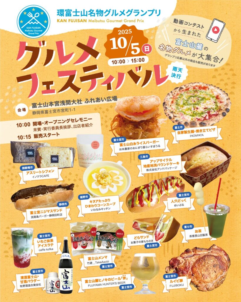 2025.10.05 環富士山名物グルメグランプリ グルメフェスティバル 2025 9/12 イベント 2025年9月12日 環富士山名物グルメグランプリで受賞やエントリーされたグルメが集まるイベントが10月5日に開催されます。 詳細 https://fujisan-meibutsu.com イベント よかったらシェアしてね! URLをコピーしました! URLをコピーしました! 2025.10.06 富士山と中秋の名月を愛でる会 関連記事 2025.10.06 富士山と中秋の名月を愛でる会 2025年9月3日 2025.03.23 アルシェ de やまき 2025年3月3日 2025.03.02 第36回にじます祭り 2025年2月3日 2025.02.02 牧野酒造蔵開き(with土井ファーム) 2025年1月10日 2024.12.07 フジヤマクラフターズ in ふもとっぱら 2024年11月26日 2024.11.30 神田川テラス「文化庁100年フード&一箱古本市」in ふれあい広場 2024年11月20日 2024.12.14 第9回能と茶と in 臥牛敷舞台 2024年11月19日 2024.11.23 第25回秋の大感謝祭 in 永田牧場 2024年11月7日